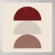 Um abstrato moderno e minimalista, com três crescentes pintados harmoniosamente com uma sutil textura de pincel. Com um fundo colorido creme.