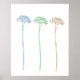 três flores de dandelion em azul, limão e poster de pêssego simples