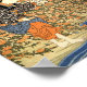 Outra impressão do famoso artista japonês Utagawa Kuniyoshi que trabalhou no século 19. Utagawa criou muitos impressões com mulheres como tema principal. Nesta impressão, vemos 3 mulheres japonesas atravessando um pequeno rio ou riacho, enquanto tentamos não molhar seus kimonos da água. Este é um impressão muito colorido quando comparado a outros trabalhos de arte daquele tempo. Foram usadas cores brilhantes e felizes - vermelho, azul, azul claro, branco / cor rosa, amarelo, castanho e muito mais. Como de costume, Utagawa assinou a trabalho de arte em caracteres Kanji e Hiragana (escrevendo japonês).