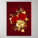 A composição de duas rosas vermelhas pintadas artisticamente e uma rosa ouro, decorada com ouro, folhas de joias sobre fundo texturizado.