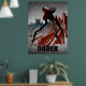A ficção científica falso propaganda poster com design de ilustração de uma máquina de guerra gigante do tripé alienígena.