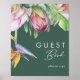 Esta floral tropical colorida | o símbolo verde do livro de convidados é perfeito para o seu casamento verde, roxo, pêssego. Design apresenta um buquê elegante de verde-aquarela de praia clássico e flores, incluindo eucalipto verde-sábio, mauve e proteína vermelha, hibisco rosa-pincel, pássaro-laranja e azul do paraíso e folha de palma verde-escura. O design é ideal para um simples, criativo, único casamento de viagem para primavera, verão, outono ou inverno! Por favor, encontre outra papelaria de casamento no resto da coleção.