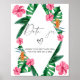 Palmas Tropicais Chá de panela de Aquarela. Design apresenta um buquê elegante de cor d'água da praia, com cor verde-d'água e flores, incluindo o hibisco rosa pincelado, laranja e ave azul do paraíso, verde-verde e folha de palma verde-escura.