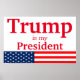 Esta poster da campanha presidencial Donald Trump apresenta um fundo branco com a frase "Trump é meu presidente" impressa em letra branca, clássica. A parte inferior da bandeira apresenta uma imagem da bandeira americana. Mostre isto com orgulho para mostrar seu apoio para reeleger Donald Trump para presidente na eleição dos EUA. Encorajem outros a votar em Trump e a manter o excelente americano.