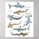 Design apresenta 7 tipos diferentes de tubarões em aquarela. Para acessar ferramentas avançadas de edição, vá para "Personalizar", role para baixo e pressione o link "clicar para personalizar mais".
