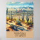 Vista de aquarela de Tucson nas encostas cobertas com cacto.