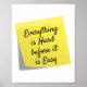 Tudo é duro, antes que seja uma citação inspiradora fácil. Um texto caligrafia simples para uma citação motivacional em uma nota amarela. Você pode editar texto ou fundo.