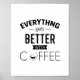 Tudo Melhora Com Café, impressão de Tipografia Vintage com Citação.