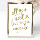 Uma elegante placa de casamento de ponta, mostra o texto "Tudo que você precisa é amor e cupcake" em uma letra extrovertida, a textura brilhante acrescenta um toque festivo e glamouroso. A cor de fundo pode ser personalizada de acordo com as suas necessidades e preferências, contacte-me se tiver alguma solicitação especial.