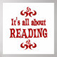 Compartilhe o seu amor pelos livros e lendo com este divertido design vermelho com florescimento e as palavras - é tudo sobre Leitura. Excelente para professor, bibliotecário ou estudante.