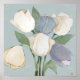 Tulipas Francesas II por Jade Reynolds. Apresenta tulipas em várias cores contra um fundo macio.