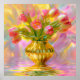 Poster Tulipas Rosa Vibrantes em Vase Ouro