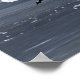 Uma foto composta de um cisne da tundra decolando graciosamente sobre o gelo Lago Winnebago, Wisconsin. A água serena se estica muito no horizonte, misturando-se ao céu em tons suaves de azul e cinza.