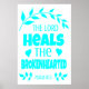 O Senhor Cura o Poster, de coração partido, sobre Matte (Archival Heavyweight Paper) em turquesa sobre o branco, o que exalta um senso de ressonância espiritual.