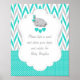 Poster Turquesa, Chá de fraldas Elefante de Cinza Branca