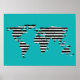 Póster Turquesa de mapa listrado branco preto