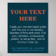 Poster de Texto Preto Personalizado Moderno. Adicione seu próprio texto para personalizar. Apresentado em texto branco, cor de laranja, azul sobre a turquesa. Excelente poster para autores, escritores, blogueiros, editores, editores, poetas, autores independentes e outras pessoas de livros, adolescentes, bandas ou qualquer pessoa que queira uma poster personalizada! Excelente de livrarias, compras de café, feiras de livros, eventos de autores e oficinas, retiros de escritores, brindes e muito mais. Todo o texto, fontes e cores podem ser personalizados por você com as ferramentas fornecidas no menu de personalização do Zazzle. Visite nossa loja, Bookles, para descobrir nossa crescente variedade de produtos, e entre em contato conosco se precisar de assistência.