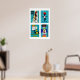 Poster Turquoise Czech Matchbox Labels Grid Print