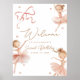Bem-vindos aos seus amigos e família a uma celebração que é fofa! Este charmoso poster de boas-vindas do segundo aniversário apresenta cores inspiradas em boho e um tema de bailarina encantador. Perfeito para o dia especial de sua dançarina, ele dá o tom para um segundo aniversário divertido e elegante.