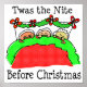 Camisas de Natal bonitas, roupa, presentes e recheados com ilustração de três crianças pequenas vestidas na cama com canas doces na noite anterior ao Natal, sonhando com ameixas de açúcar e todos os papais noeis trarão.