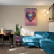 Um coração colorido com luzes cintilantes num céu estrelado cósmico.