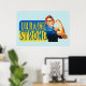 Honrando as mulheres da Ucrânia, este poster apresenta um texto "Ucrânia Forte" na bandeira ucraniana com a ilustração icônica Rosie the Riveter.