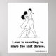 Esta elegante e minimalista impressão de arte de Michael Carter, Save the Last Dance, captura um momento eterno de amor e conexão. A ilustração mostra um casal dançando juntos, simbolizando a alegria de momentos compartilhados e a promessa de manter sempre um ao outro perto. Com a frase romântica "O amor está querendo salvar a última dança", esta peça fala sobre o compromisso e afeto que define uma relação duradoura. Perfeito como presente para aniversários, casamentos, ou Dia de os namorados, esta trabalho de arte é um belo lembrete da importância de valorizar cada momento com um ente querido. Ideal para decoração domiciliar, traz calor e romance para qualquer espaço.