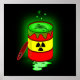 Cuidado! Risco biológico! Um barril verde de resíduos perigosos tóxicos, com a tampa descuidadamente deixada no chão e o seu conteúdo nocivo e desagradável a sair.