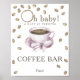 Café de cor aquosa, café e padrão de feijão. Chá de fraldas de café. Texto com anel de café e com café e xícara de café com arco.