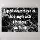 "Um bom advogado custa muito. Um mau advogado custa muito mais." Wiz Dumb por Day Williams. Copyright Day Williams 2011. Todos os Direitos Reservados.