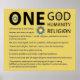 UM Deus, Humanidade, Religião (com flor de lótus de 9 pontos). Toda a humanidade é uma família. Mulheres e homens são iguais. O preconceito em todas as suas formas — racial, religioso, nacional ou econômico — deve ser ultrapassado. Temos de investigar a verdade para nós próprios, sem preconceitos. Ciência e religião, fé e razão, devem estar em harmonia. A educação deve ser uma prioridade global. Os problemas econômicos estão ligados a problemas espirituais. Existe um Deus, e todas as grandes religiões vêm desta única Fonte. A promessa, a expectativa e a ansiedade de todas as idades estão a ser cumpridas, à medida que o mundo convive em paz universal, como um planeta e uma pessoas.