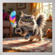 Arte de parede adorável com um gatinho fofo doce se divertindo perseguindo uma pena. A beleza total.