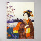 Poster Um Geisha pela Água Bloco de Madeira Japonês Ukiyo