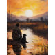 Capturando um vínculo eterno entre o homem e seu companheiro leal, esta requintada pintura a óleo dá vida a um momento sereno ao lado do lago. À medida que o sol cai graciosamente abaixo do horizonte, o homem e o seu cão fiel sentam-se lado a lado, partilhando uma ligação silenciosa que as palavras não conseguem expressar. As águas tranquilas espelham as vibrantes tonalidades do pôr do sol, lançando um brilho quente e suave em sua companheira.