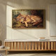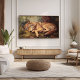 Adicione um toque sereno ao seu espaço com esta litografia de estilo vintage de um lobo dormindo aninhado num cenário de floresta pacífico. Perfeito para criar uma atmosfera calma e inspirada na natureza em qualquer lugar. Esta trabalho de arte faz um presente encantador para amantes da natureza e fãs da arte retrô.