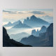 Esta paisagem impressionante captura uma impressionante vista de montanhas robustas perfurando através de uma espessa camada de nevoeiro matinal. A luz suave do nascer do sol ilumina a cena, criando um belo gradiente de azul e cinzas à medida que as cordilheiras recuam até a distância. O contraste entre os picos agudos e quebrados e o nevoeiro suave e sofisticado cria uma sensação de profunda paz e majestade. É uma imagem perfeita para amantes da natureza, caminhantes, e qualquer um que aprecie a beleza do excelente ao ar livre.