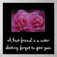 2 rosas cor-de-rosa, melhores amigos a dizerem sobre fundo negro