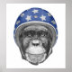 Esta design apresenta um retrato de um chimpanzé num capacete motorizado patriótico.