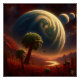 Um poster brilhante da trabalho de arte de "Um Mundo Alienígena" do Planetário Prankster.