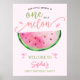 Celebre seu filho de um ano com uma melancia no aniversário temido! Excelente para festas de primeiro aniversario para o seu bebê de verão. Este símbolo divertido de aniversário melão apresenta uma melancia de aquarela e um roteiro "Um em melão". Personalize com suas informações ou clique em "Clique para personalizar mais" para editar estilos de fonte, tamanho e cores.