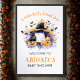 Bem-vindos convidados para a sua celebração com este adorável sinal de boas-vindas do chá de fraldas de aquarela e fantasma de abóbora. Com a frase "Um Pequeno Boo Está Quase Devido" com morcegos, estrelas e um design assustador, este símbolo de chá de fraldas gótico inspirado no Dia das Bruxas é perfeitamente personalizável com o nome e os detalhes do evento do seu bebê. Perfeito para o outono, gótico, ou chás de fraldas do Halloween, isso adiciona um toque divertido e festivo à decoração do seu partido.