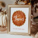 O sinal de favorecimento do chá de fraldas apresenta uma escrita branca e caprichosa que diz "Favores" numa ilustração de torta de abóbora de aquarela, parte da Coleção de Chás de fraldas A Little Cutie Pie Fall. Esta design de outono rústica pode ser personalizada com sua mensagem abaixo, como "Por favor, pegue um." Com terracota quente e tons ouro castanhos, é o toque perfeito para uma queda ou chá de fraldas favorito da abóbora.