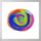 Uma vibrante espiral de cores se mistura perfeitamente, apresentando tons de laranja, azul, verde e rosa contra um fundo branco. Sua forma abstrato cria um sentido de movimento e energia.