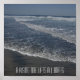 A cena da praia quando a maré entra. Ondas à distância e um céu azul no horizonte.