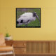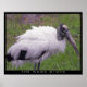 Uma Tempestade de Madeira joga suas penas. - A fotografia original de ZoeSPEAK sobre este poster mostra um cegoneiro-de-madeira a abanar as suas penas. Esta ave selvagem incomum tem uma plumagem branca sobre penas de asas pretas, pernas longas e finas e um bico longo, castanho, que cai da cabeça para a ponta curva. O pescoço da cegonha está coberto de pequenas penas cinzentas com uma banda preta na coroa. E o resto da cabeça parece quase sem penas. A cegonha, uma espécie ameaçada, está nos mostrando seu perfil fotográfico, nos olhando com um olho preto. Há um quadro de borda preta ao redor da foto, com as palavras THE WOOD STORK em uma cor bege claro. centralizado sob a foto.