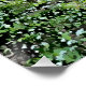 Um poster impressionante representando uma floresta serena, onde a luz do sol se filtra através das árvores, iluminando um tapete de delicadas flores brancas.