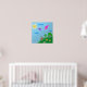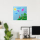 Um poster de desenho digital de uma menina segurando pipas que estão voando no céu. O desenho com flores e as árvores numa colina verde, onde a garota de vestido vermelho está de pé. O sol está brilhando no céu. Perfeito para garotas.