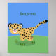 Este guepardo bonito está correndo por diversão! Desenhado no estilo de ilustração de desenhos bonitos. Tempo Safari!