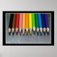 Uma fileira de lápis coloridos pontiagudos e pontiagudos sentados em uma escrivaninha de granito de cinza. Um belo espectro de cores do arco-íris. Azul, roxo, verde, amarelo, laranja, rosa, vermelha, marrom e preta.