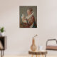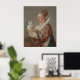 Possuir um impressão de qualidade museu de uma Mulher A de Jean Honoré Fragonard com um Cachorro, pintada por volta de 1769 e parte da sua série Figures de Fantaisie. Este retrato do Rococo retrata uma aluna aristocrática do salão, Marie Émilie Coignet de Courson (1716-1806), vestida com uma fantasia teatral do século 16/17 inspirada por vestidos judiciais vistos nos retratos de Rubens de Marie de Médicis. A pintura contrasta com humoridade as proporções amplas da babá com seu pequeno cachorro, cuja cauda enrolada, seda, ecoa os ingletes de sua cinza, criando uma harmonia visual encantadora. A mulher olha diretamente para o espectador com uma expressão lúdica e viscosa, enquanto o cão olha carinhosamente para ela. A escova ampla e viva de Fragonard e a paleta vibrante exibem sua virtuosidade e dor, com um manejo solto, mas dominado, de tecido e textura. Este trabalho exemplifica a habilidade de Fragonard em capturar personalidade e teatralidade numa curta sessão de pintura, fazer-a uma obra amada na coleção do Museu Metropolitano de Arte.